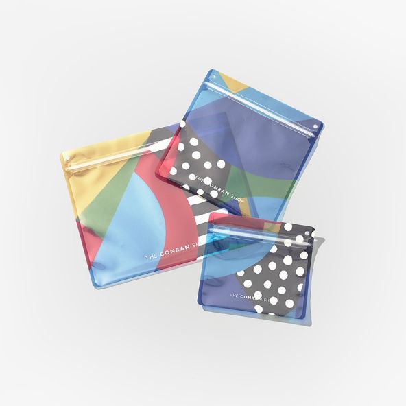 グラフィックに使用した柄は過去THE CONRAN SHOPの紙袋として愛されていた通称6色柄。